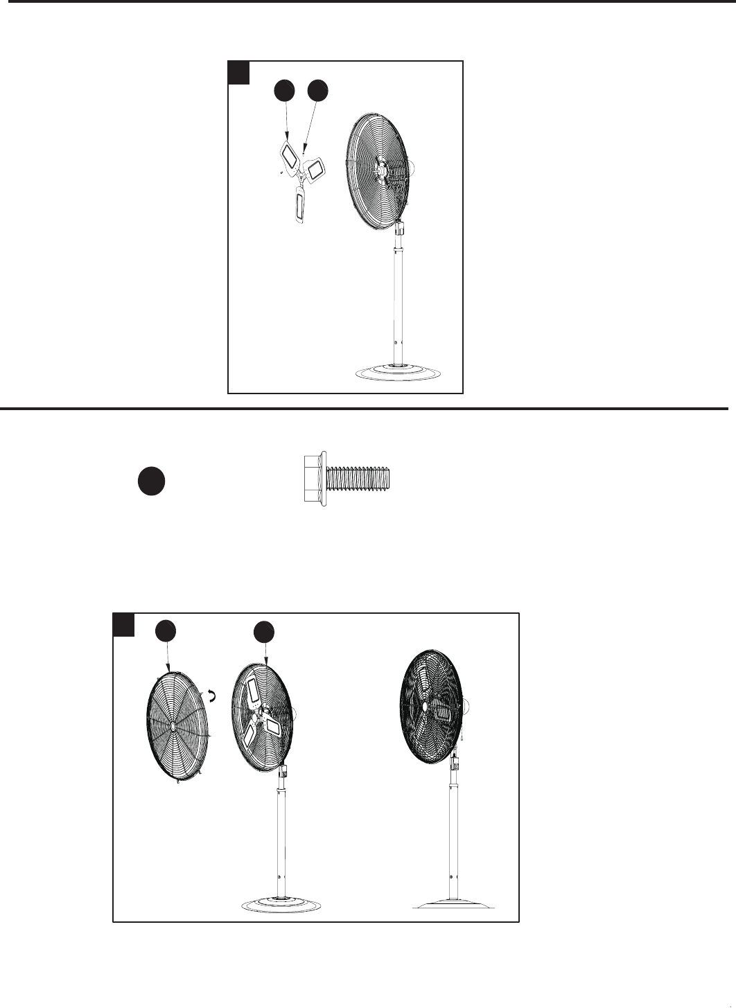 Attachez les pales (B) à la tige sur le moteur , puis fixez-les à l’aide de deux vis M6 de 16mm