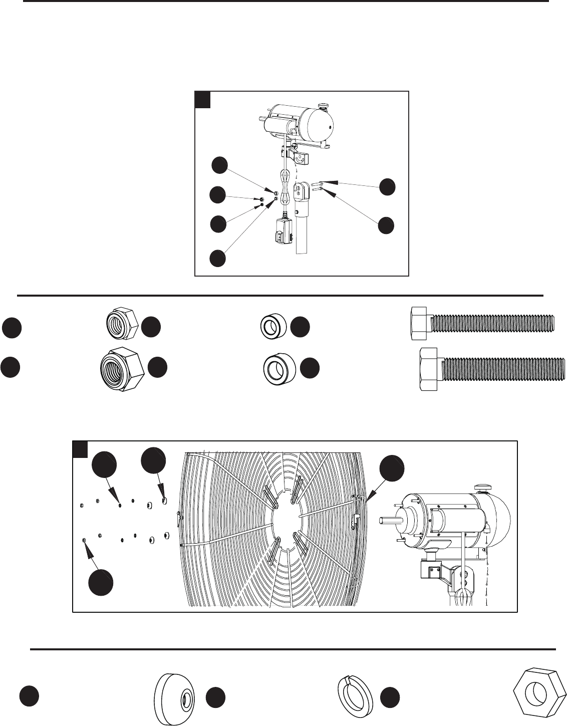 Fije la protección posterior (C) a los tornillos del motor , luego, fíjelos con 4 arandelas del