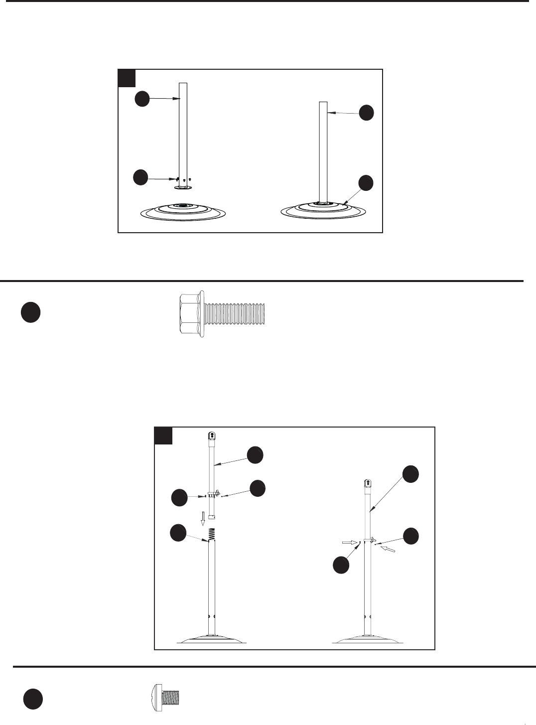 pole (D). Place the spring into the standing pole (E). Insert the upper connecting pole (D) into the