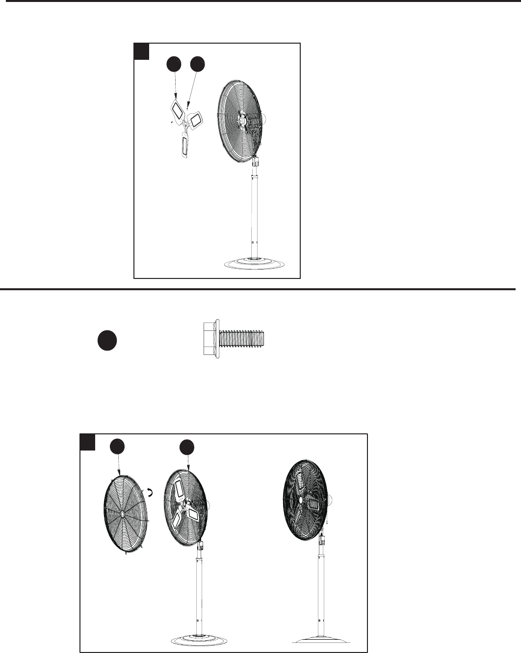 Attach the blade (B) to the shaft on the motor , then secure them together using two M6x16