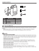 TROUBLESHOOTING PROBLEM Pump will not begin pumping or retain prime after operating, or stops pumping water. POSSIBLE CAUSE 1. Air leak in suction line. 2. Fittings are not tight. 3. Hose is kinked or looped. ump will not start P or run. 4. 5. 6. 7. 8. 9. 1. I nlet hose is out of the water. Clogged inlet. Inlet lift too high. Impeller blocked. Worn seal. Collapsed inlet hose. Blown fuse or circuit breaker. 2. Low line voltage. 3. W orn brushes. 4. Impeller blocked. 5. Defective motor.