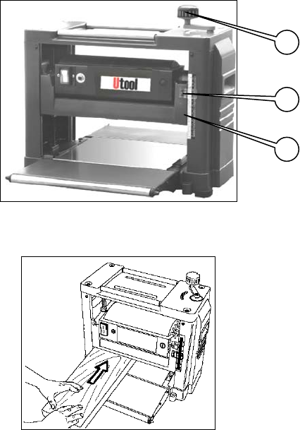 Щоб подати заготовку в переносний рейсмусовий верстат, встаньте збоку від підвідного отвору.
