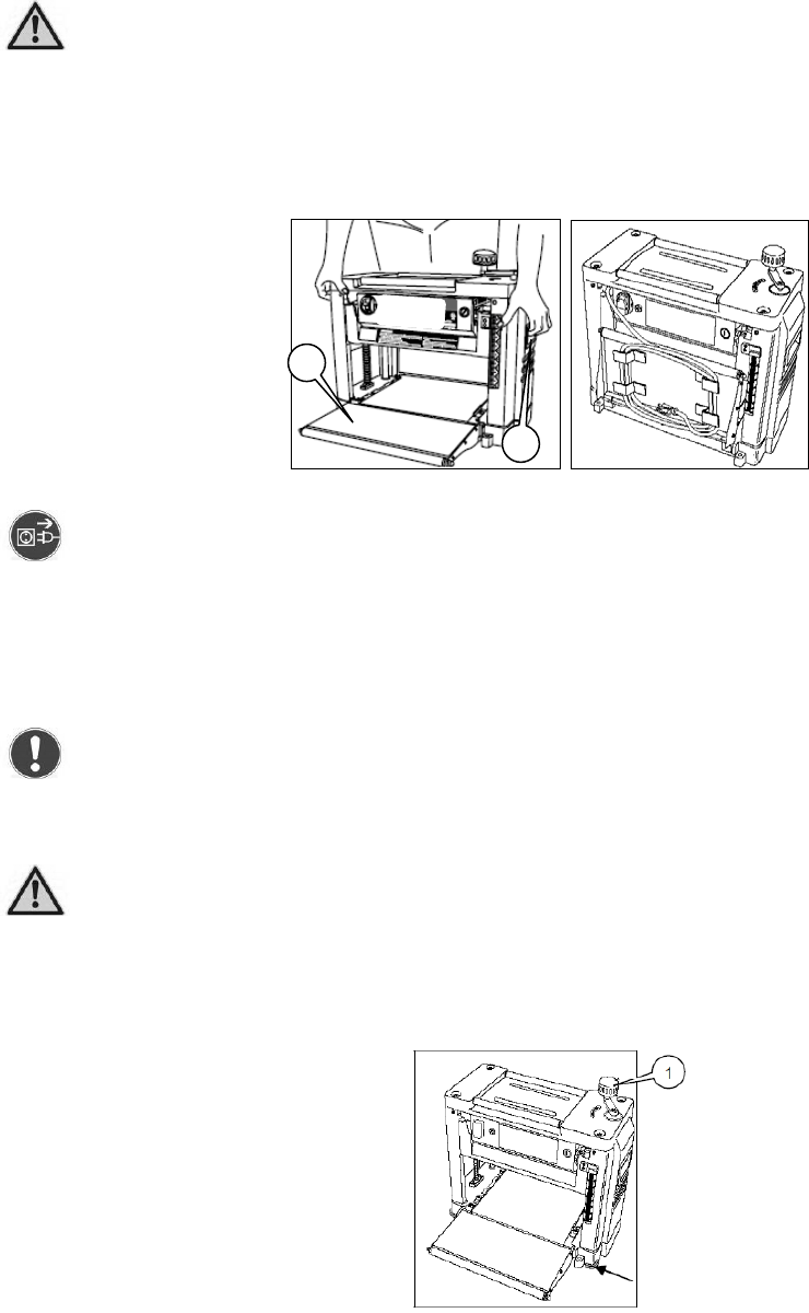 Для зберігання і транспортування верстата підніміть вгору завантажувальний стіл (12) і оберніть