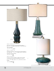 27482-1 26582-1 27482-1 Junelle 34” Fluted blue glass with brushed aluminum metal details. 16” round hardback drum shade consists of an off white inner shade and a white, silken sheer, outer shade. 150 watt, 3-way 27862-1 Meena 29” This lamp offers a clear blue, mouth blown glass body with satin nickel metal detail and a 15” silken silver gray hardback round drum shade. 150 watt, 3-way 26582-1 Alaia 38” Etched, frosted, cobalt blue glass with plated brushed brass details and a crystal foot.