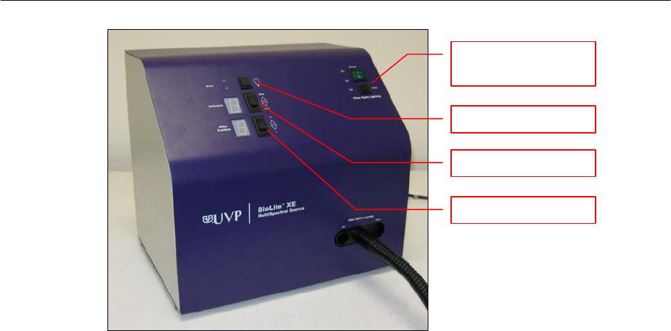 b. Light Source: Press this button to turn the xenon light bulb on or off. When the bulb is on,