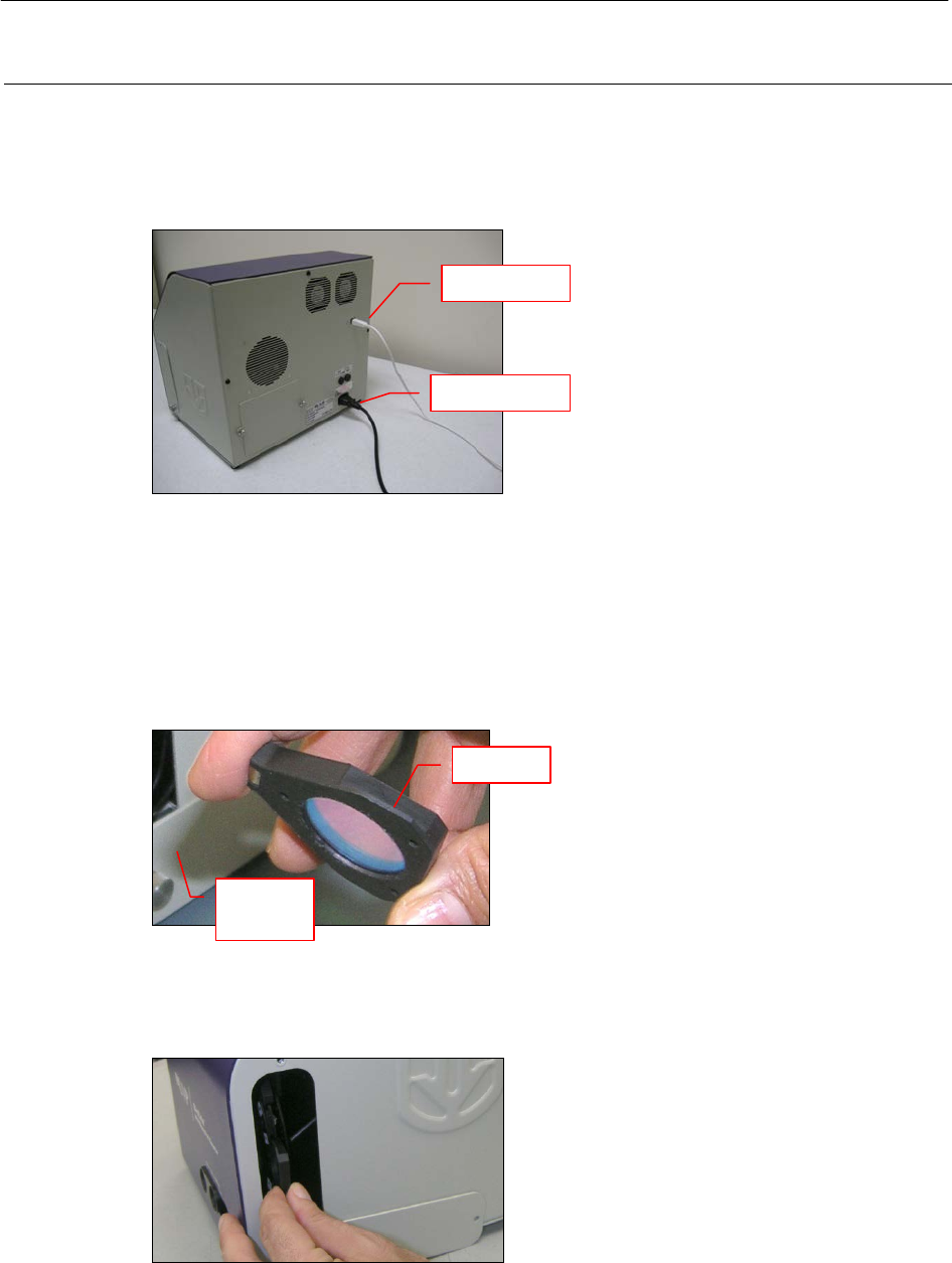 2. Slide the filter into the filter wheel as shown below. The small metal tab on the filter holder will