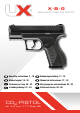 X∙B∙G SEMI-AUTO BB AIR PISTOL Operating instructions 3 - 10 Bedienungsanleitung 11 - 18 Mode d´emploi 19 - 26 Manual de instrucciones 27 - 34 Инструкция по эксплуатации 43 - 50 Istruzioni per l‘uso 35 - 42 Instrukcja obsługi 51 - 58 TR Kullanım kılavuzu 59 - 66 CO2-PISTOL cal. 4,5 mm (.
