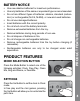 • • • • • • • • • • • • Use new alkaline batteries for maximum performance. Use only batteries of the same or equivalent type as recommended. Do not mix different types of batteries: alkaline, standard (carbonzinc) or rechargeable (Ni-Cd, Ni-MH), or new and used batteries. Do not use damaged batteries. Insert batteries with the correct polarity. Do not short-circuit the battery terminals. Remove exhausted batteries from the toy. Remove batteries during long periods of non-use.