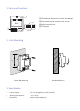 1. Parts and Functions [5] [1]DIP switches for lamp control or unlock time settings [4] RLC [1] [2] [2]Relay contact terminal, connect to lock or lamp. [4]Monitor connection port. 4B GND 12V BT [5]LED indicator 1234 ON [3] NO NC COM 2. Unit Mounting 85mm Direct Wall Mounting DIN Rail Mounting 3.