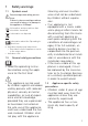 1 Safety warnings 1.1 Symbols used Denotes important safety precautions. Failure to observe said precautions can result in injury or in damage to the appliance or fittings! Information and precautions that should be observed. Information on disposal Information about the Operating Instructions ▸ Indicates step-by-step instructions. – Describes how the appliance reacts to the steps taken. ▪ Indicates a list. 1.