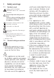 1 Safety warnings ▪ WARNING: This appliance is only designed for drying textiles which have been washed in water. ▪ The appliance is only to be used with the recommended vaporizing medium. The use of other substances may give rise to a toxic or fire risk. ▪ The appliance has hot surfaces to evaporate active components. These surfaces should not be touched during use. ▪ The tumble dryer may not be used if industrial chemicals were used for cleaning. ▪ The lint trap has to be cleaned frequently.