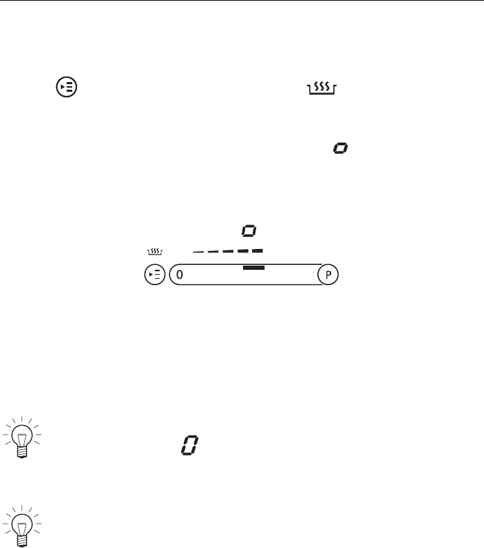 – Die gewählte Fortkochstufe wird mit dem Leuchtbalken angezeigt.