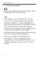 1 Safety precautions 1.2 General safety precautions • Read the operating instructions before using the appliance for the first time! • This appliance is not intended for use by persons (including children) with reduced physical, sensory or mental capabilities, or lack of experience and/or knowledge, unless they are supervised or have been given instruction concerning use of the appliance by a person responsible for their safety.