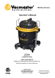 Wet/Dry Vacuum Operator’s Manual 12 Gallon Model No. VJH1211PF 0203 FOR YOUR SAFETY Read and understand this manual before use. Keep this manual for future reference. Distributed By Cleva North America, Inc. 601 Regent Park Court Greenville, SC 29607 Replacement Filters & Accessories available at: Vacmaster.