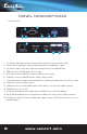 PANEL DESCRIPTIONS Transmitting Unit 4 1 5 2 3 7 6 8 13 9 10 11 12 1. Link Indicator Light (lights up when connected and transmitting signal to ethernet switch) 2. Power Indicator Light (lights up when powered up by PoE or included power supply) 3. Info Indicator Light (shows data is being sent/received over the Cat cable/RJ45 port) 4. DB9 connector for RS-232 Control Pass-Through 5. IR-TX port (connect included IR Transmitter cable for source control) 6.