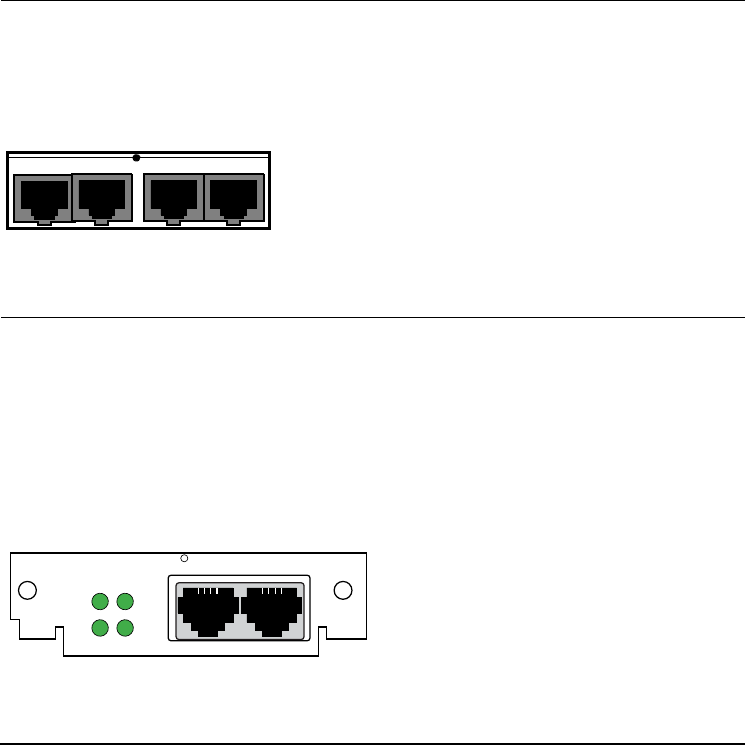 The 4-Port Voice FXO Daughtercard has four RJ11 connectors for four FXO Ports.