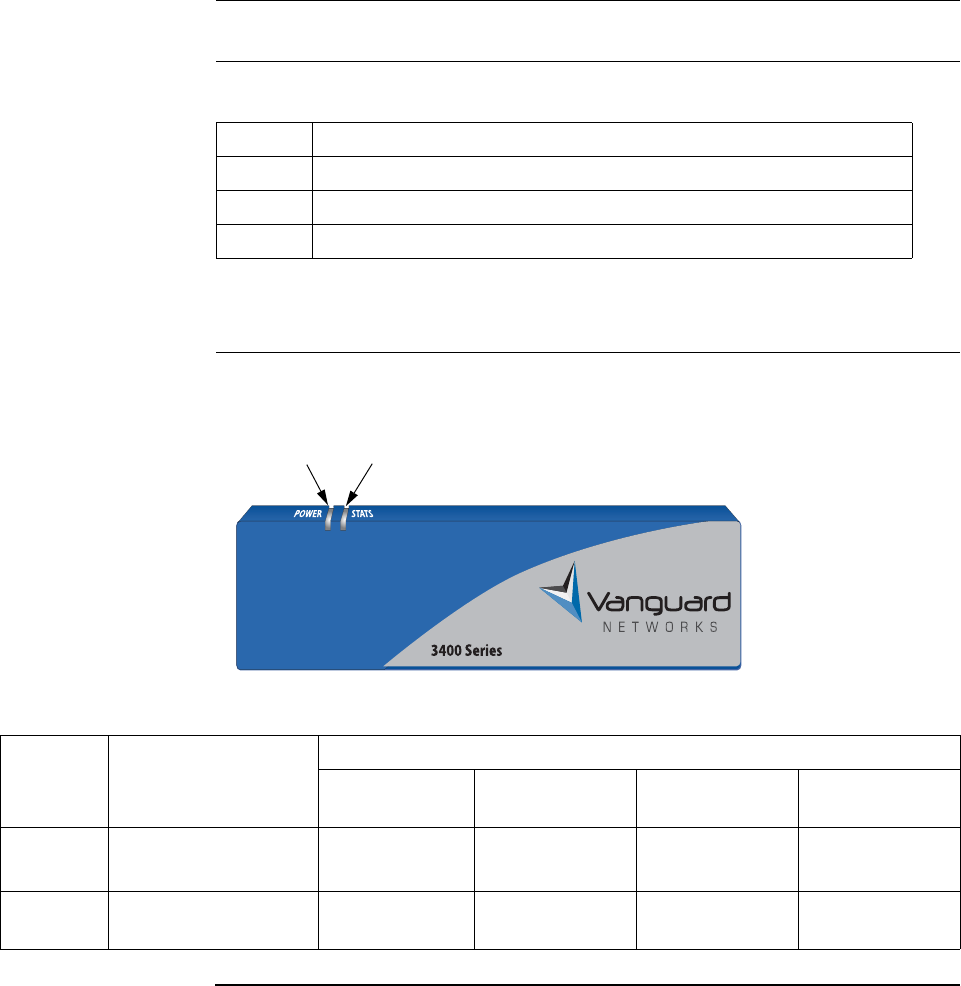 LEDs Figure 4-1 shows the Vanguard 3400 Series LEDs and the table that follows