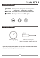 BUTTON : Short press to change the color temperature ( warm light 、 nature light , cool light ) BUTTON : Long press to do the brightness adjustment BUTTON : Short press to turn on/ off the light CONTAINED ITEMS 10X magnifying 12V Power Adapter Input 110-240V Output 12V 2A Please use included power adapter, Do not use an unsuitable power adapter, otherwise it could damage the mirror electronics.