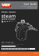 User Guide Vax Careline: (UK) 0844 412 8455 (ROI) 1-800 928 308 Steam cleaner steam grime master Get cleaning... What’s your Vax model number? (Located on the flap of the packaging) e.g. S 4 What’s your serial number? – (Located on the base of the machine) – – – – Note these down in case you need them in future. Please keep instructions for further use. vax.co.