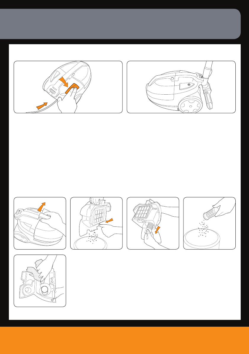 NOTE: For convenience there is a parking slot located at the rear of the vacuum cleaner where