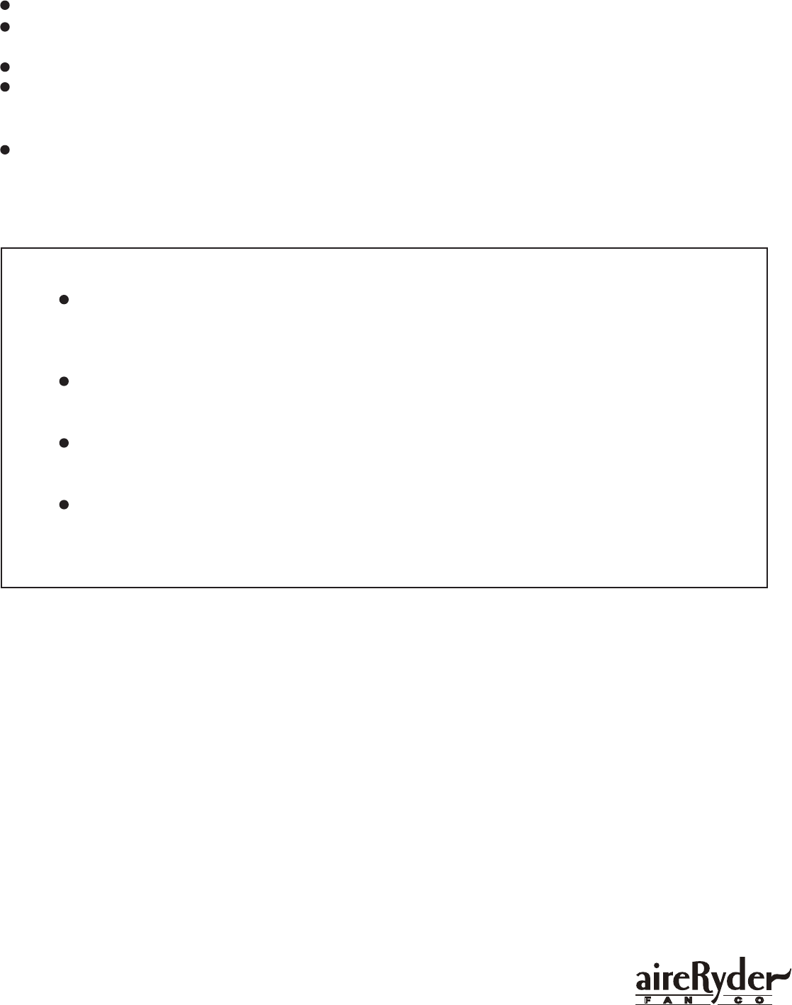 These factors must be supplied by the person(s) installing, caring for and operating the fan.