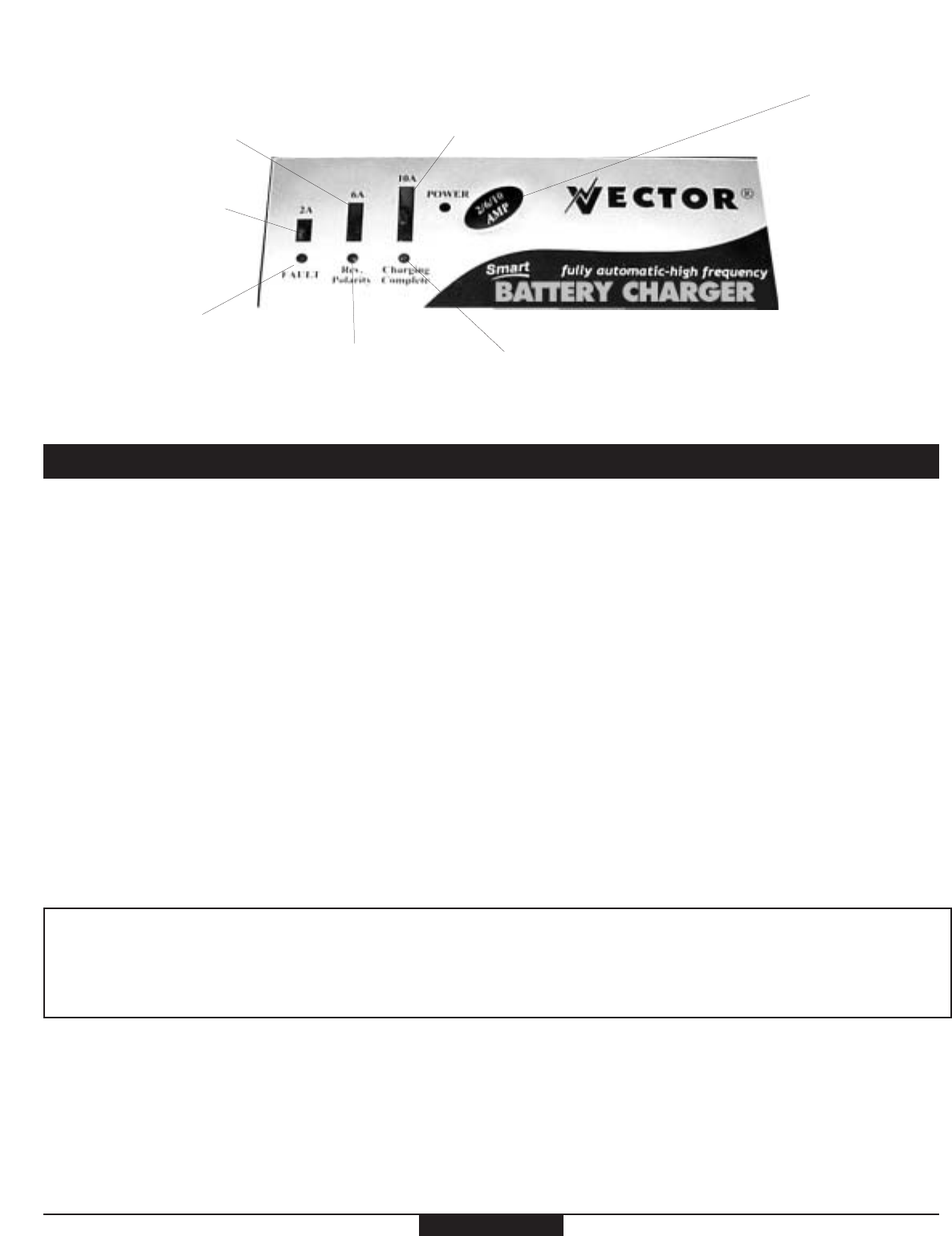 Pressing the 2/6/10A switch button selects the desired charge rate. The selected Charge Rate is indicated by a lit vertical