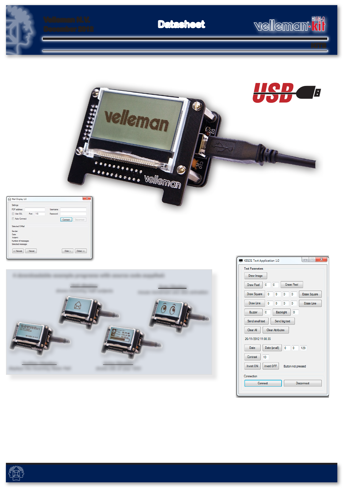 A test program (with source code) can also be downloaded to test all functions of the kit -