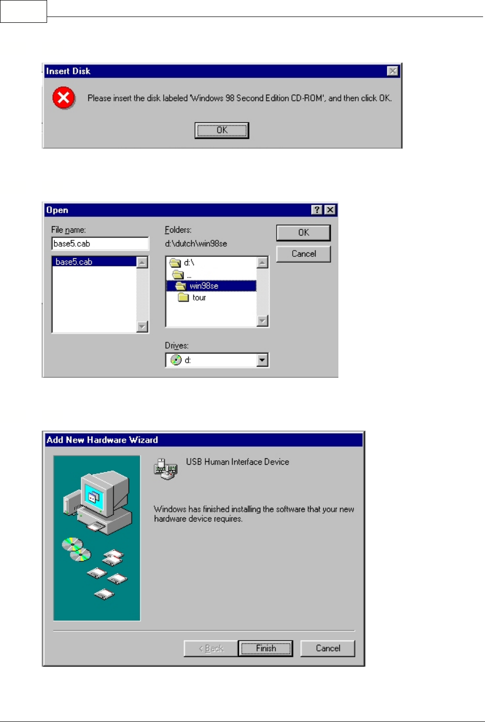 Put your original Windows 98 SE CD in your CDROM drive if necessary