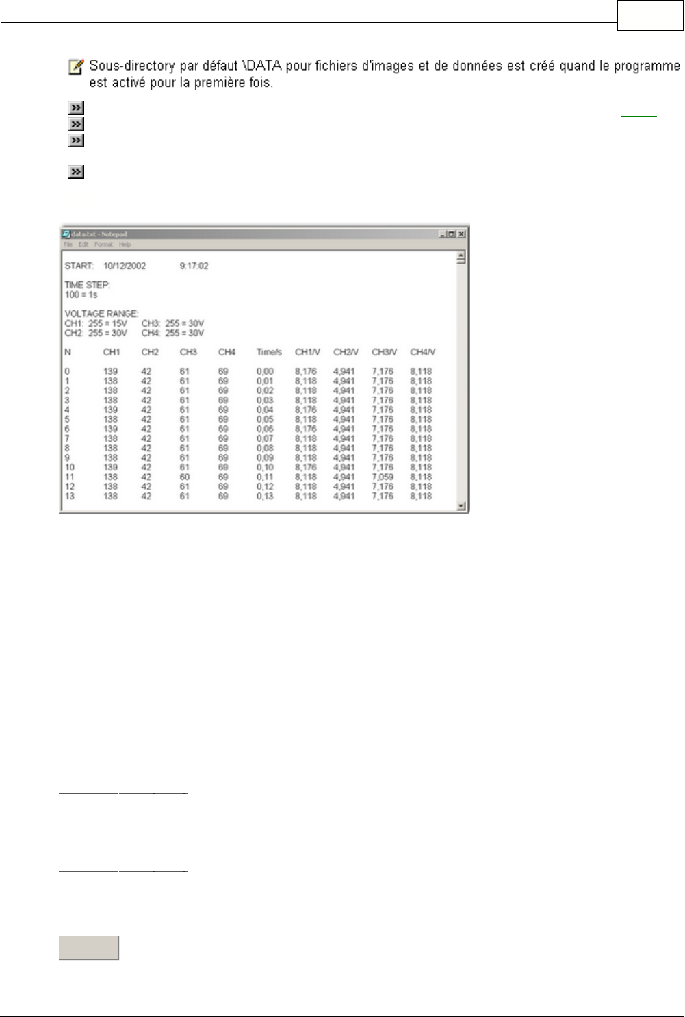 AutoSave data : Les données mesurées sont automatiquement sauvegardées dans un fichier.