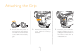 6. Connect the BG-S3 grip to the camera, while aligning the grip’s mounting screw with the camera’s tripod socket. 7. Rotate the at tachment wheel in the direc tion shown by the arrow until it is firmly tightened. 8 When removing the grip, turn the camera power off and remove the batteries.