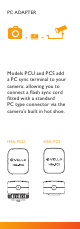 PC ADAPTER Models PCU and PCS add a PC sync terminal to your camera, allowing you to connect a flash sync cord fitted with a standard PC type connector via the camera’s built in hot shoe.