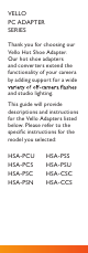 VELLO PC ADAPTER SERIES Thank you for choosing our Vello Hot Shoe Adapter. Our hot shoe adapters and converters extend the functionality of your camera by adding support for a wide and studio lighting. This guide will provide descriptions and instructions for the Vello Adapters listed below.