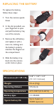 REPLACING THE BATTERY To replace the battery, follow these steps: 1. Turn the remote upside down. 2. In the slot provided, use your fingernail to open and pull the battery tray out of the remote. 3. Remove the old battery and replace it with a new one, making sure the battery’s polarity matches the diagram on the compartment. 4. Slide the battery tray back into the remote until it locks in place. SPECIFICATIONS Dimensions (H × W × D) 0.42" × 1.22" × 2.4" (11 × 31 × 61 mm) Weight 0.