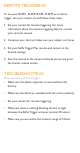 REMOTE TRIGGERING To use your IR-SPC, IR-SPP, IR-SPS, IR-SPM as a remote trigger, turn your camera on and follow these steps: 1. Set your camera for remote triggering. For more information about the remote triggering feature, consult your camera’s manual. 2. Compose your shot and make sure your subject is in focus. 3. Set your Selfie Trigger Plus remote and camera to the desired settings. 4. Aim the remote at the camera’s infrared sensor and press the shutter release button.