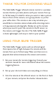 TROUBLESHOOTING The camera will not trigger. • Make sure the plastic separator is removed from the battery. • Make sure the battery is installed according to the correct polarity. • Set your camera for remote triggering. • Make sure there is nothing blocking the line of sight between the Selfie Trigger and your camera’s IR sensor. FCC COMPLIANCE This device complies with Part 15 of the FCC Rules. Operation is subject to the following two conditions: 1. This device may not cause harmful interference. 2.