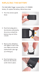 REPLACING THE BATTERY The Vello Selfie Trigger is powered by a 3 V CR2025 battery. To replace the battery, follow these steps: 1. Turn the remote upside down. 2. Push the locking tab in the direction indicated by the arrow, and pull the battery tray out of the remote. 3. Remove the old battery and replace it with a new one. Make sure the side marked with a plus sign (+) is facing up. 4. Push the battery tray back into the remote until it locks in place.