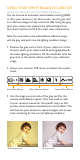 USING YOUR WHITE BALANCE CARD SET Using the Gray Card to Set White Balance You can choose an automatic white-balance setting (AWB or A) in your camera or, for best results, use the gray card in a reference image to help customize WB. Using the gray card, your camera can measure the reflected light from this neutral surface and find the exact color temperature. Note: You must make a new white-balance reference image with the gray card each time the lighting conditions change. 1.
