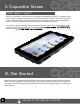 III. Get Started (Cont’d) This is your Lock Screen. It appears to secure the touch screen from accidental touches. Simply slide one of the locks toward the center of the screen to unlock the device and your Home Screen will reappear. The Battery should have a nominal charge on it out of the box and should charge fairly rapidly. Connect the charger to the DC-IN jack on your Cruz for 3 hours for a full charge lasting approximately 10 hours. The unit also charges when tethered to PC via USB.