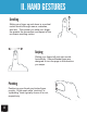 II. HAND GESTURES Scrolling Sliding your finger up and down in a vertical motion scrolls through menus, websites, and lists. The quicker you slide your finger, the greater the momentum and speed of the on-screen scrolling motion. Swiping Sliding your finger left and right scrolls horizontally. Some eReader apps are designed to turn the page in the direction you swipe.