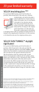 0 year limited warranty VELUX insulating glass (b)(c) For a period of (20) twenty years from the date of purchase, VELUX warrants to the end-user(a) that the insulated glass unit will not develop a Insulating glass material obstruction of vision due to a failure of the glass seal.