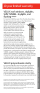 Warranty The VELUX promise Specific limited product warranty 10-year “No Leak” installation warranty Warranty claim procedure