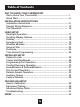 Table of Contents GET TO KNOW YOUR THERMOSTAT Get to Know Your Thermostat..................................................... 1 Quick Start................................................................................... 6 INSTALLATION INSTRUCTIONS Installation Instructions............................................................... 9 Sample Wiring Diagrams............................................................ 13 Test Operation.....................................................................