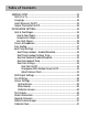 Table of Contents GET TO KNOW YOUR THERMOSTAT Home Screen......................................................................................... 1 Menu Screens........................................................................................ 1 Dropdown Dashboard............................................................................ 2 Care and Use of Your Thermostat.......................................................... 3 QUICK START Selecting Your Desired Temperature and Mode.............
