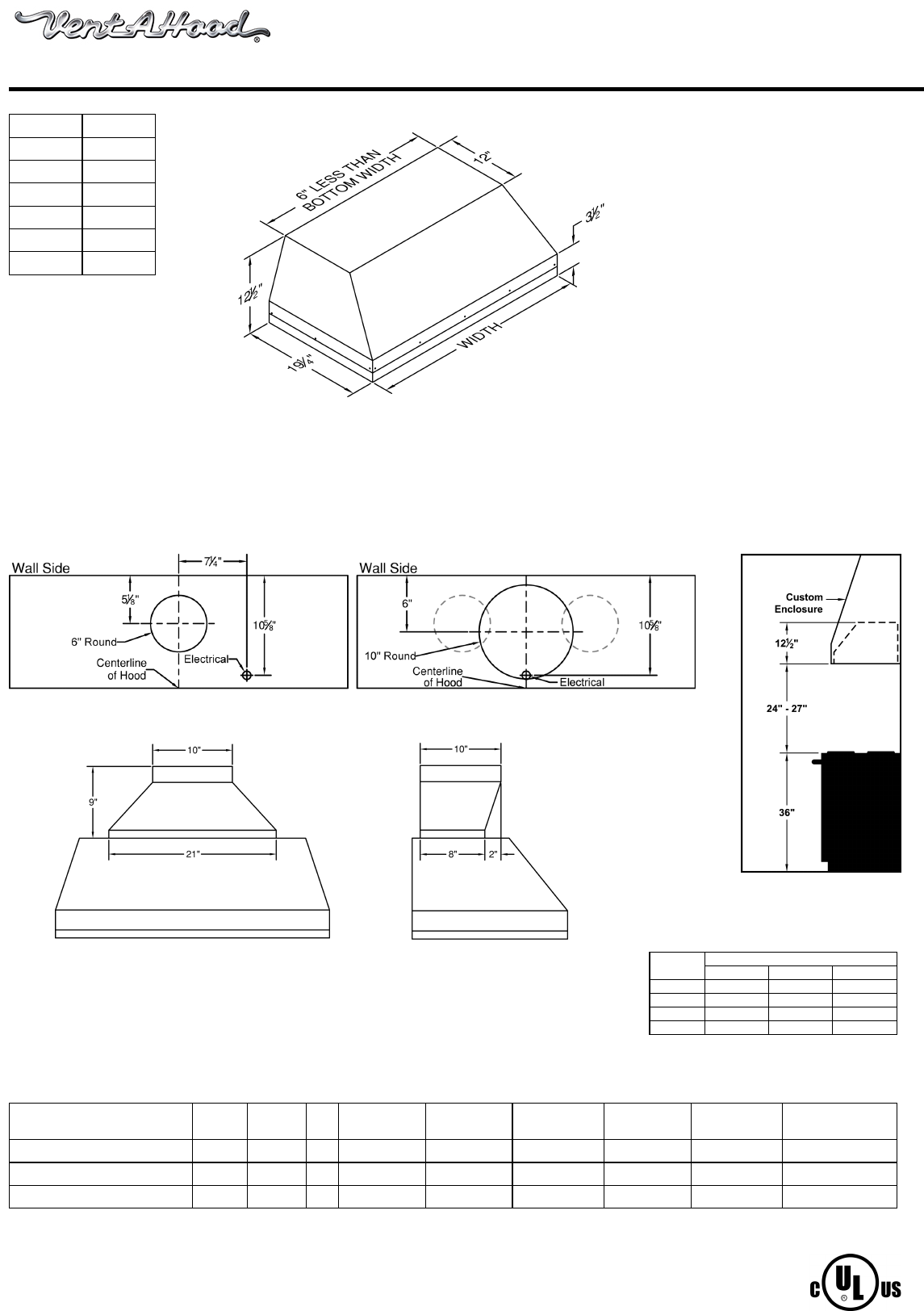 +Add 0.5 amp for each halogen light. Hoods are available with halogen lights (2 lights: 30" - 41", 3 lights: 42" - 53", 4 lights: 54" - 66").