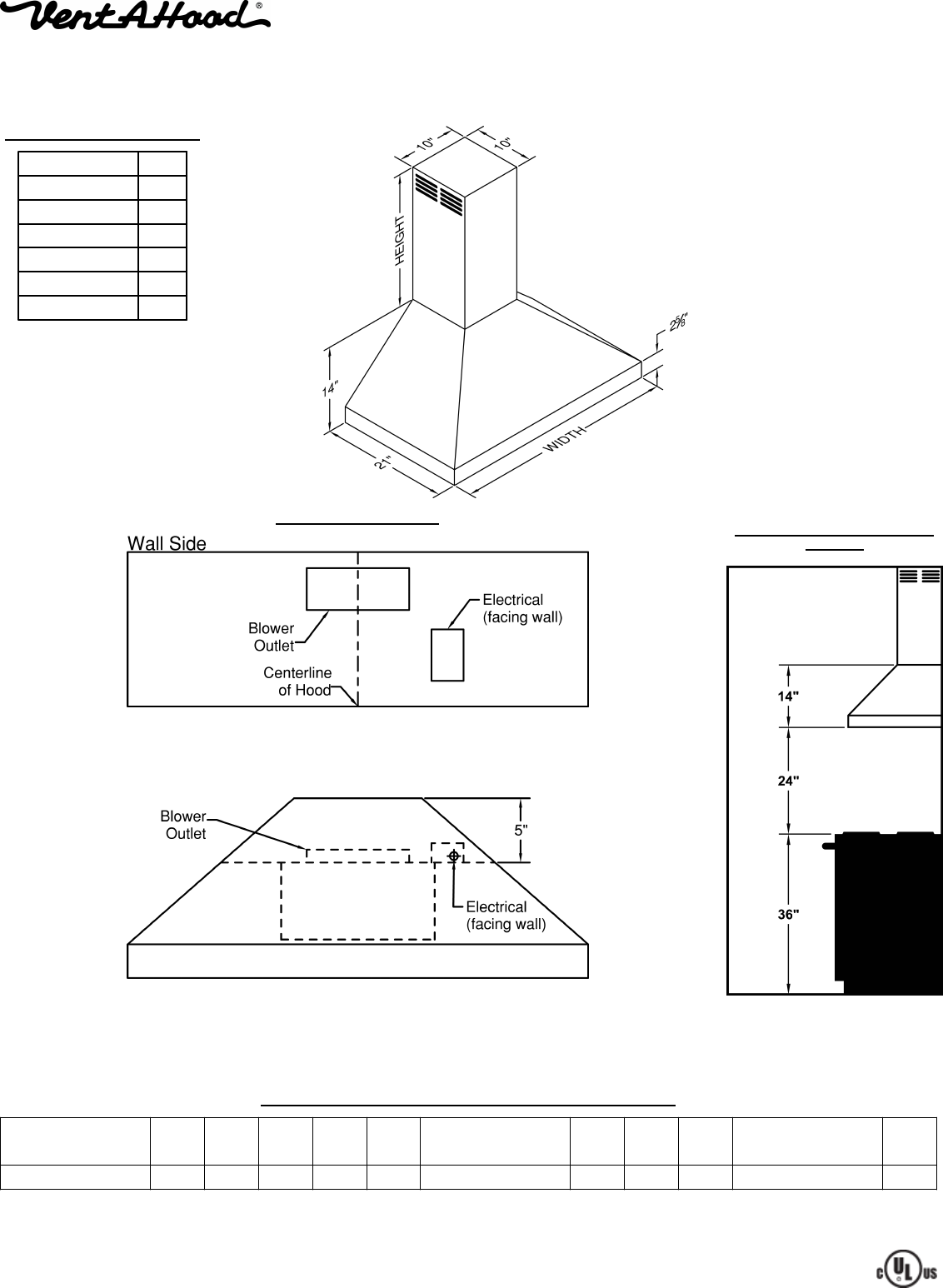 DUCT FREE WALL MOUNT RANGE HOOD SPECIFICATIONS