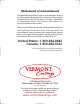 ©2004 Vermont Castings - a CFM company The Vermont Castings logo, R.O.C.TM (Rugged Outdoor CompositeTM) are trademarks of Vermont Castings and not to be used without express permission by the owners and managers of Vermont Castings. Patents Pending USA 1998-2004 Revision A: February, 2004 Part No.