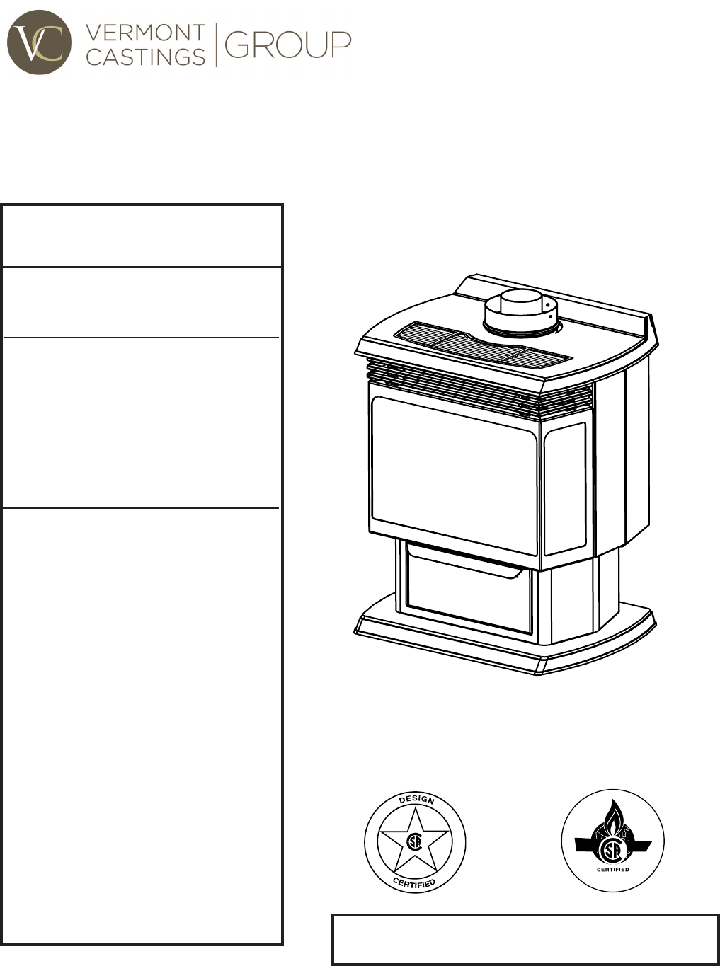 RFSDV34 Freestanding Direct Vent Gas Stove Table of Contents PLEASE READ THE INSTALLATION & OPERATING INSTRUCTIONS BEFORE USING THIS APPLIANCE. Thank you and congratulations on your purchase of an Vermont Castings Group gas stove. IMPORTANT: Read all instructions and warnings carefully before starting installation. Failure to follow these instructions may result in a possible fire hazard and will void the warranty. Installation & Operating Instructions General Information, Warnings, Cautions...............