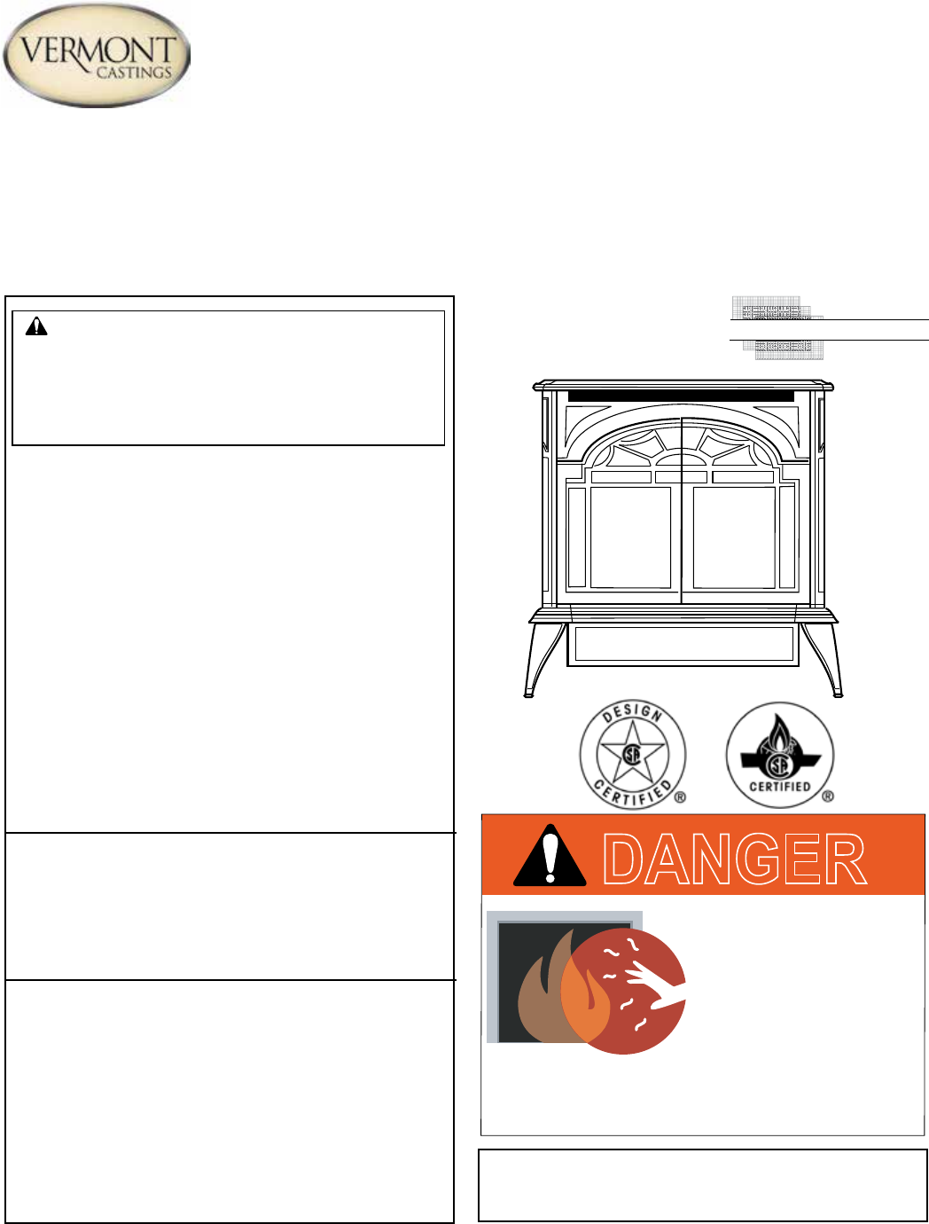 Stardance® Direct Vent/Natural Vent Gas Heater Table of Contents PLEASE READ THE INSTALLATION & OPERATING INSTRUCTIONS BEFORE USING APPLIANCE. Thank you and congratulations on your purchase of a Vermont Castings stove. IMPORTANT: Read all instructions and warnings carefully before starting installation. Failure to follow these instructions may result in a possible fire hazard and will void the warranty. Installation & Operating Instructions General Information ............................................