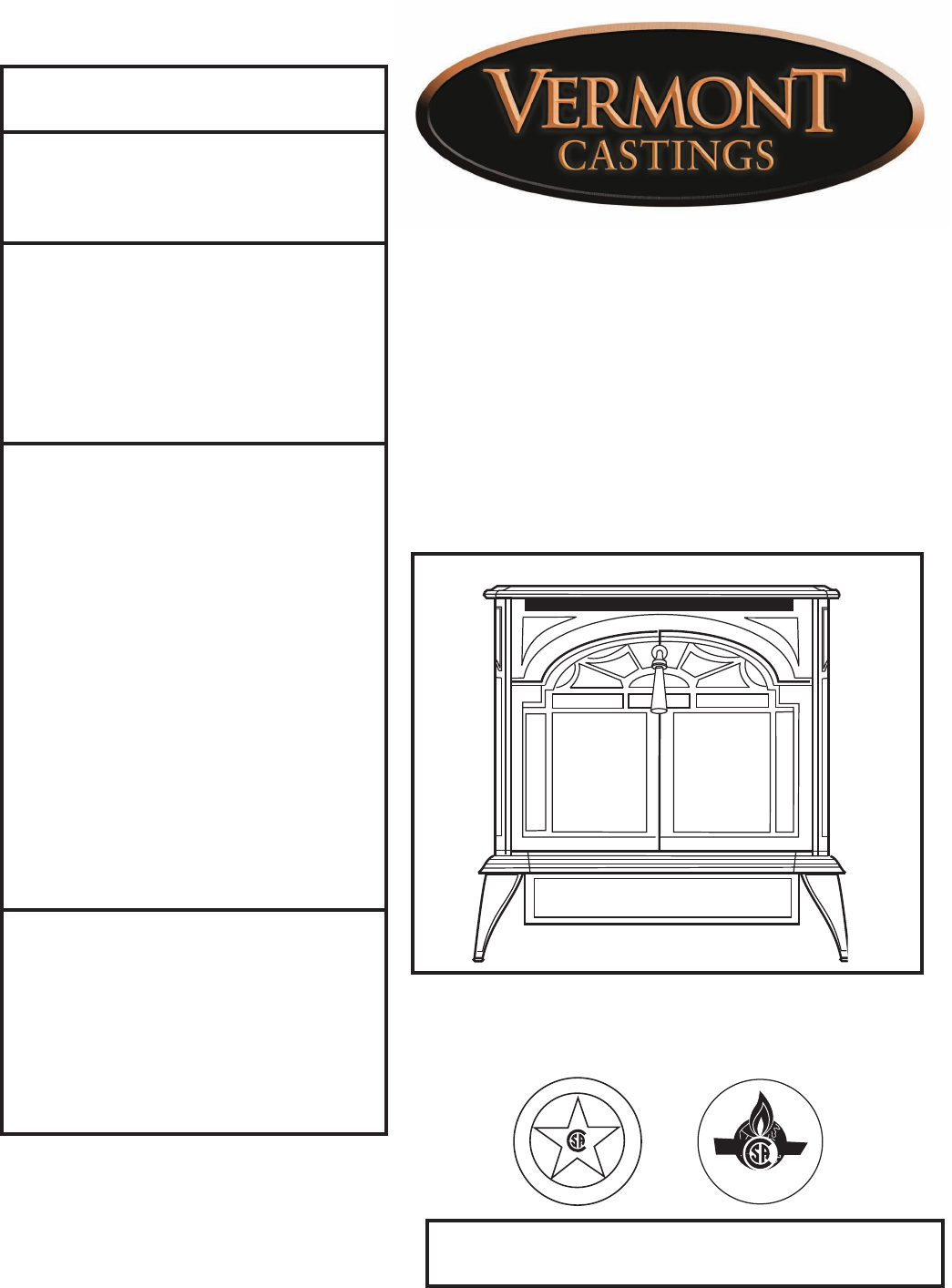 Stardance Direct Vent/Natural Vent Gas Heater Table of Contents PLEASE READ THE INSTALLATION & OPERATING INSTRUCTIONS BEFORE USING APPLIANCE. Thank you and congratulations on your purchase of a Vermont Castings stove. IMPORTANT: Read all instructions and warnings carefully before starting installation. Failure to follow these instructions may result in a possible fire hazard and will void the warranty. 2 Installation & Operating Instructions ................................................................