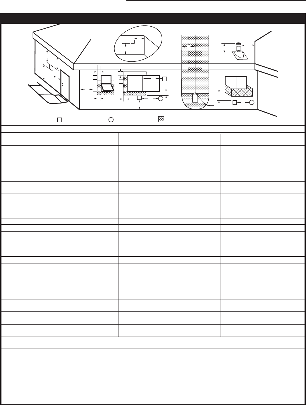 J = Clearance to nonmechanical air supply inlet 6” (15cm) for appliances < 10,000 6” (15cm) for appliances